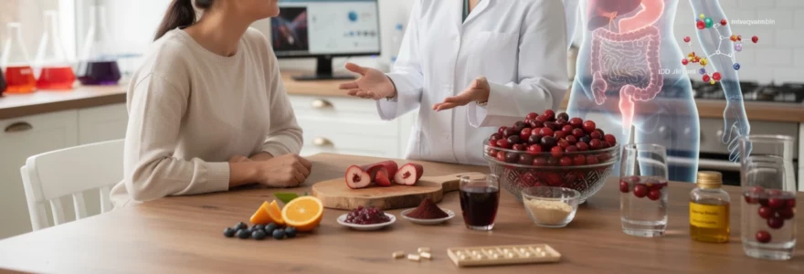 L’absorption intestinale des PAC-A suit un processus complexe impliquant leur dégradation partielle par la microflore colique. Les métabolites résultants, principalement des acides phénoliques de faible poids moléculaire, exercent alors leurs effets biologiques au niveau des tissus cibles. Cette transformation métabolique explique pourquoi l’efficacité thérapeutique de la canneberge nécessite une consommation régulière plutôt que ponctuelle.
